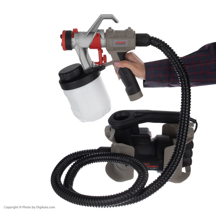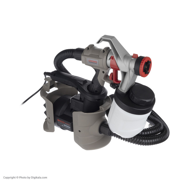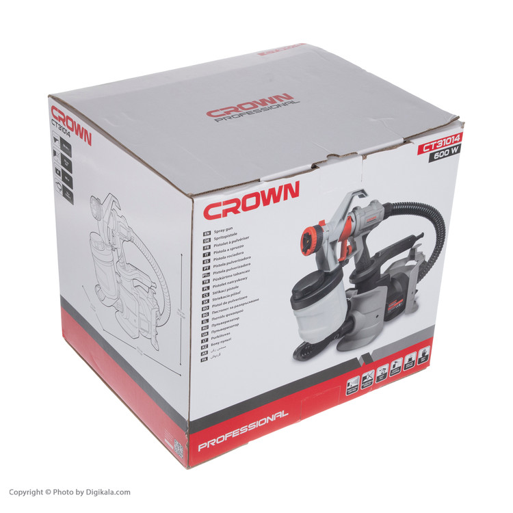 پیستوله برقی کرون مدل CT31014، ساخته شده در شرکت کرون (Crown) است. این محصول تحت عنوان مدل (CT31014) به بازار عرضهشده است. این پیستوله دارای 2845 گرم وزن است. یکی از ویژگیهای بسیار خوب این پیسوله این است که در زمان اتمام کار میتوان آن را از سمت دسته داخل استند خود قرار دهیم. شرکت کرون برای این پیستوله یک نازل برنجی با قطر 2.5 میلیمتر در نظر گرفته است. برنج یکی از فلزاتی است که در برابر اثر خوردگی توسط مواد شیمیایی دارای مقاومت بسیار بالایی است. پیستولهها به دو صورت بادی و برقی ساختهشدهاند. مشکل پیستولههای بادی این است که نیاز به یک کمپرسور باد برای پخش رنگ از نازل هستند ولی پیستوله برقی چنین مشکلی را ندارد و با یک مخزن کوچک یا بزرگ که به آن وصل میشود، پاشش رنگ روی سطح صورت میگیرد. کار نقاشی با پیستولههای برقی بسیار راحت است و نیاز به مهارت چندانی ندارد و تنها با حرکت یکنواخت میتوانید سطوح یا جسم مدنظرتان را نقاشی کنید. موتور این دستگاه با توان ۶۰۰ وات، قادر است به خوبی نیاز شما برای رنگآمیزی برطرف کند. مخزن رنگ این پیستوله بهراحتی از دستگاه جدا میشود و تا 900 میلیلیتر گنجایش انواع رنگ را دارد. مزیت که سری پیستوله برقی کرون مدل CT31014 نسبت به نسل قبلی و رقبای خود در بازار این محصول دارد قابلیت شارژ مجدد مخزن بدون جدا سازی از بدنه و با دریچهای است که به این منظور روی آن تعبیه گردیده است. برای کسانی که میخواهند کارهای نقاشی خود را بهراحتی در منزل انجام دهند و یا کسانی که زیاد بارنگ و مشتقات آن سروکار دارند خرید این پیستوله را پیشنهاد میکنیم.