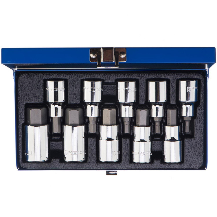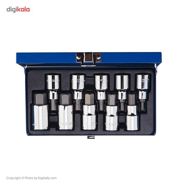 مدل NTS 7004 یک مجموعهی مبدل 10 عددی است. این مبدلها سری بکس با درایو ½ اینچ را به سری آلن تبدیل میکنند. با استفاده از نوعی آچار میتوانید از این مجموعه استفاده کنید و سایزهای مختلفی از پیچهایی با سری آلن را بازکرده و یا ببندید. شرکت سازنده جنس مرغوبی را در ساخت این محصول بهکاربرده و این مدل را در بستهبندی مناسبی عرضه کرده است. این مجموعهی 10 عددی ساخت شرکت «نووا» (Nova) است. با استفاده از دستهی بکس با درایو ½ اینچ میتوانید از این مبدلها استفاده کنید. البته به کمک گونهای از آچار چهارگوش با سایز 12 میلیمتر هم میتوانید برای بهکارگیری این مبدلها استفاده کرد. سایزهای سری آلن که در مدل NTS 7004 دیده میشود، شامل H17, H14, H12, H10, H8, H7, H6, H5, H4 و H19 میشوند. این مبدلها از آلیاژ کروم-وانادیوم که مقاومت بالایی در مقابل فشار و ضربه دارد، ساخته میشود. این ست در یک جعبه فلزی محکم قرارگرفتهاند. مجموعهی مبدلی که به شما معرفی شد، مبدلهایی هستند که با کمک آچار بکس با درایو ½ اینچ برای باز کردن 10 سایز مختلف از پیچ با سری ستارهای به کار میروند.