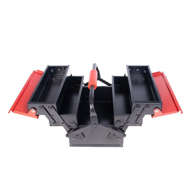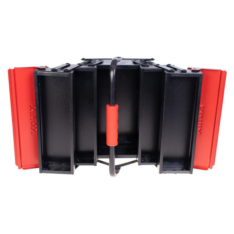 این جعبه ابزار تمام فلزی، از ورقهی فولادی ضد زنگ مرغوب ساخته شده است و تمامی قسمتهای آن به وسیلهی پینهایی بادوام و باکیفیت، به صورت محکم و منظم به هم متصل شده اند تا محل مطمئن و جاداری را برای انواع ابزار شما فراهم کنند. دستهی فلزی این جعبه ابزار رونیکس، در قسمت میانی خود دارای یک دستگیرهی پلاستیکی ABS خوشدست به طول 11.5 سانتیمتر است که به خاطر جنس خوب خود و داشتن جای قرارگیری انگشت، حمل و نقل جعبه را به راحتی و بدون فشار و خستگی دست انجام در پی دارد. روکش بدنهی این جعبه ابزار رونیکس فلزی، رنگ کوره ای الکترواستاتیک است. این روش رنگ کاری ویژه و کاربردی، علاوه بر دوام بدنه، جعبه را ضد خش و خراشیدگی میکند. درب بالایی و اصلی این جعبه ابزار به صورت اتوماتیک است و به شکل کاملا منظم باز و بسته میشود. این جعبه ابزار سه طبقه، مجموعا دارای 5 محفظه یعنی 4 محفظهی کوچکتر با ابعاد 4.5×10×30 سانتیمتر و یک محفظهی بزرگتر با ابعاد 10×20×30 سانتیمتر است. این جعبه ابزار سایز 30 سانتی، در وزن مناسب 3525 گرم و ابعاد21×20.5×30 عرضه شده است.