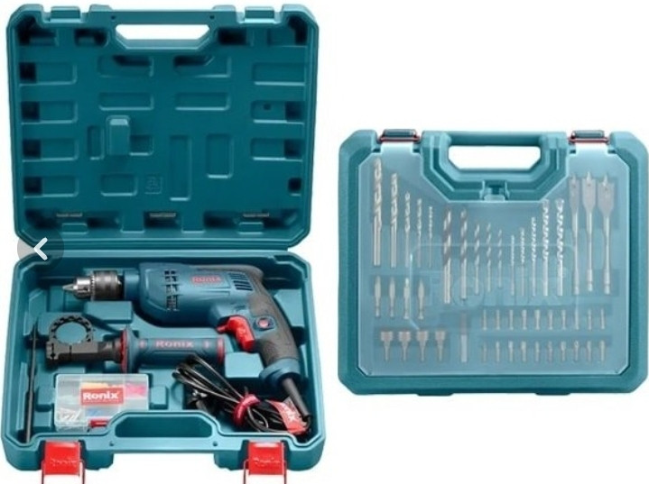 ست کیف ابزار رونیکس مدل RS-0005، مجموعه کاملی از یک دریل چکشی و انواع مته و سر پیچگوشتی های مختلف است. این مجموعه کامل، برای استفاده در مصارف خانگی و صنعتی به کار شما میآیند. این ست کیف ابزار، در یک کیف مقاوم به ضربه BMC به بازار ابزار ایران و جهان عرضه میشود. دریل موجود در ست کیف ابزار 54 تایی رونیکس مدل RH-0005، مجهز به یک موتور 750 واتی بسیار قدرتمند برای بهترین کارایی در سوراخکاری و دریلکاری چکشی است و میتواند با سرعتی بالغ بر 2700 دور در دقیقه کار کند. سهنظام این دریل، آچاری و تمامفلزی بوده و با ظرفیت 13-1.5 میلیمتر کار میکند. مجموعه ابزارآلات و قطعات موجود در این کیت، در صنایع چوبی، فلزی و ساختمانی مورد استفاده قرار میگیرند.