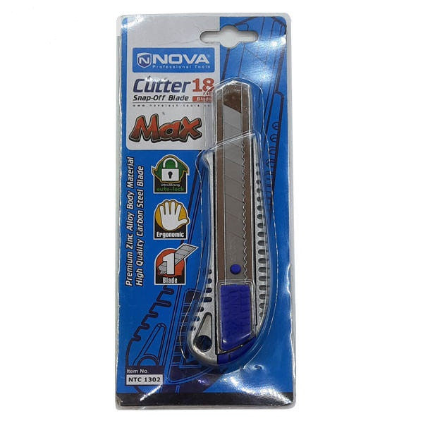کارترهایی که شرکت «نووا» (Nova) سازندهی آن است از طراحی برخوردارند که بهراحتی در دست قرار میگیرند. این محصول که دستههای محکم و جنس مقاومی دارند. برای استفاده بهتر و ایمنی بالاتر کاربر قابلیتهایی برای این محصول در نظر گرفتهشده است. کاتر مدل NTC 1302 محصولی است که با طول 16 سانتیمتر تولید میشود. این ابزار کاربردی دارای بدنهای از جنس پلاستیک و ریلی فلزی است. یک قفل برای جلوگیری از حرکت کاتر در ریل فلزی دستگاه در نظر گرفتهشده و از قسمت انتهایی کاتر میتوانید برای قطع کردن کاتر بهصورت قطعهای استفاده کنید. کارتر ابزاری است که برای برش دقیق و با دقت بالای اجسام مختلف کاربرد دارد. تیغههای کاتر با پهنای 9، 18 و 19 میلیمتر ساخته میشوند. برای کاتر مدل NTC 1302 باید از تیغهی با پهنای 18 میلیمتر استفاده کنید. این محصول شرکت نووا با وزن 155 گرم و طول 16 سانتیمتر تولیدشده است. بدنهی و قفل کاتر از جنس پلاستیک و ریل تیغه از جنس فلز ساخته میشود.