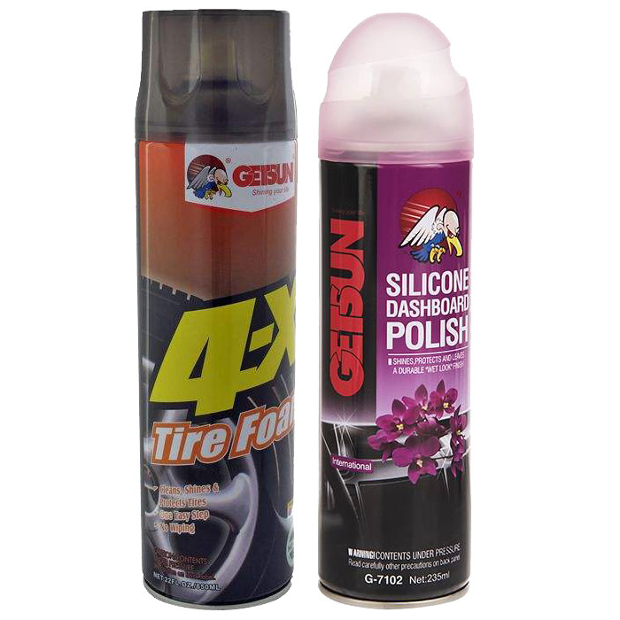 اسپری تمیز کننده تایر گتسان مدل G1008-7102 به همراه اسپری واکس داشبورد