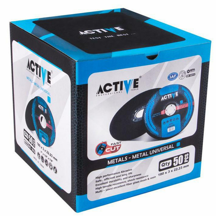 صفحه برش آهن اکتیو تولز اصلی با قطر 180 و ضخامت 3 میلیمتر مناسب برای برش آهن با فرز بزرگ با دور 8500 دور در دقیقه. دارای استاندارد EN12413 . حتما قبل ازشروع استفاده نکات ایمنی مورد نیاز کار با فرز را رعایت کنید.
